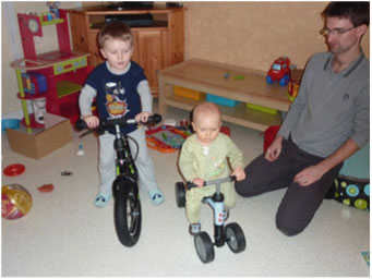 Nous sommes parents de deux enfants : Lubin, 5 ans et Johan, 2 ans. Nos fils sont adeptes de la draisienne, explications : l’histoire remonte à 6 ans. A cette époque j’étais en poste d’éducateur dans un jardin d’éveil sur Paris.