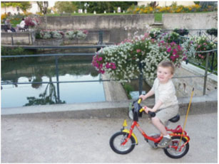 A 3 ans, confiants de l’entraînement réalisé durant l’année avec la draisienne, nous lui offrons un  vélo enfant à pédales, pensons que ce ne sera qu’une formalité ! Mais c’est une erreur : notre fils n’est pas confiant, trouve le vélo trop lourd et perd  toute l’aisance et toute son autonomie. Il commence à avoir peur au moindre dévers, pente, etc.