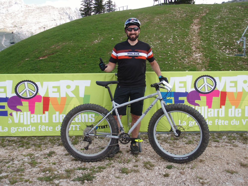 Essai du Pugsley : il passe absolument partout en montée comme en descente, pierrier ou terrain meuble, rien ne lui résiste. Le secret réside dans le gonflage précis des pneus (dans mon cas à 0.450 Bar) pour un maximum de motricité et d’amorti.
