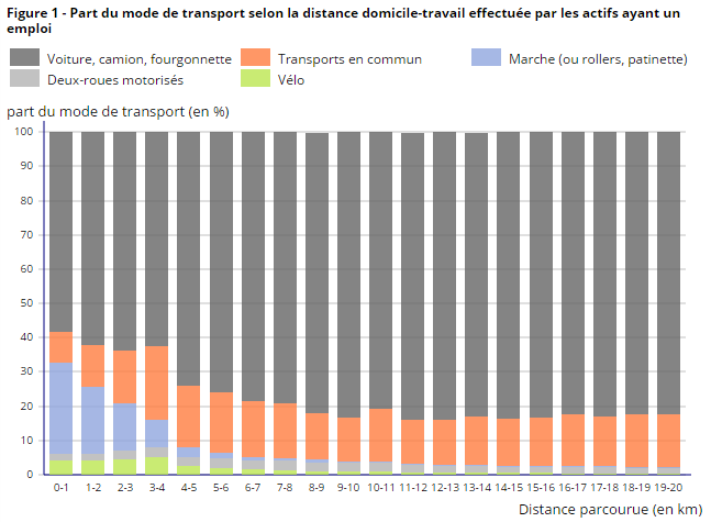 Les chiffres de l’Insee confirment la tendance observée ces deux dernières années : en 2015, 2% des actifs vont travailler à vélo. La part modale de la bicyclette a encore une belle marge de progression devant elle. Les actifs habitent essentiellement en milieu urbain et ont entre 1 et 4 km à parcourir.