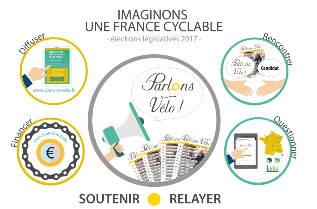 La deuxième étape de cette mobilisation concerne la préparation des élections législatives : la FUB a lancé une campagne de financement participatif afin de proposer une version avancée du site « Parlons Vélo » avec la possibilité pour les internautes de chercher la position des candidats de sa circonscription sur le sujet du vélo.