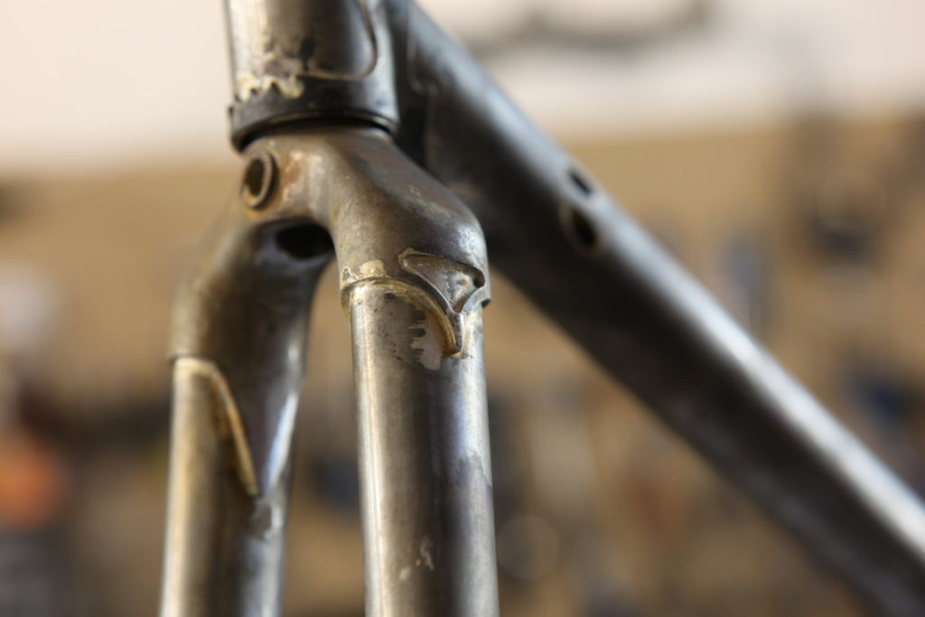 Pour gruger les tubes, customiser les raccords (de selle, de pédalier et de douille direction), créer les pontets pour le maintien des garde-boue, créer la fourche, braser les raccords et la fourche, soudo-braser le triangle arrière, contrôler l’alignement du cadre sur un marbre… 15 jours à temps plein (hors peinture) auront été nécessaires pour venir à bout de cette fabrication. La soudure a, à elle seule, a réclamé 2 jours de travail.