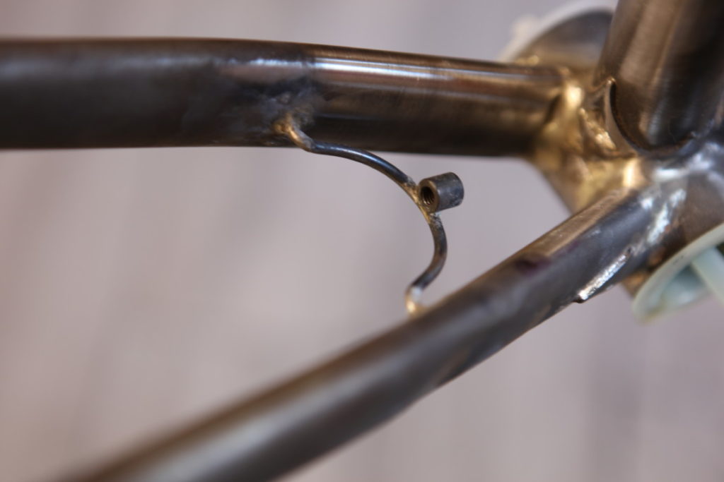 Dans l’idée d’avoir un vélo « épuré » j’ai choisi d’intégrer les pattes de fixations d’éclairages au vélo. Les passages de câbles en interne et une