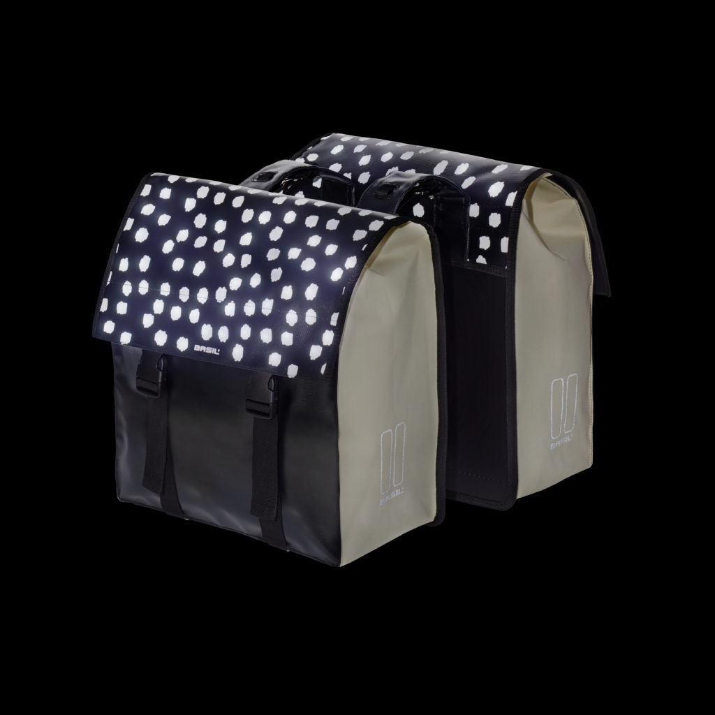 Une toute nouvelle gamme avec 3 modèles, dont un en tout petit format, qui conviendra pour les enfants ou pour les personnes qui n’ont besoin que d’un petit volume. Basil utilise certains motifs afin de rendre les sacoches réfléchissantes dans la nuit.