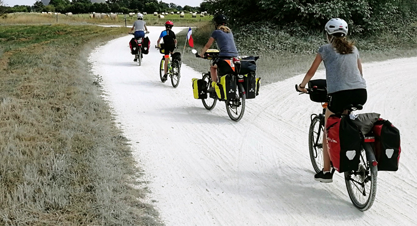 « Oui, de façon plus modeste à l’occasion des vacances d’été, nous sommes partis tous ensemble, 2 années consécutives, sur les chemins de la Vélodyssée, après que des amis habitués à ce mode de vacances nous ont donné l’envie d’essayer. Nous l’avons adopté, ce qui nous a permis de créer une dynamique familiale dans laquelle chaque membre prend une place un peu différente de celle qu’il a à la maison. »