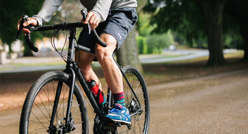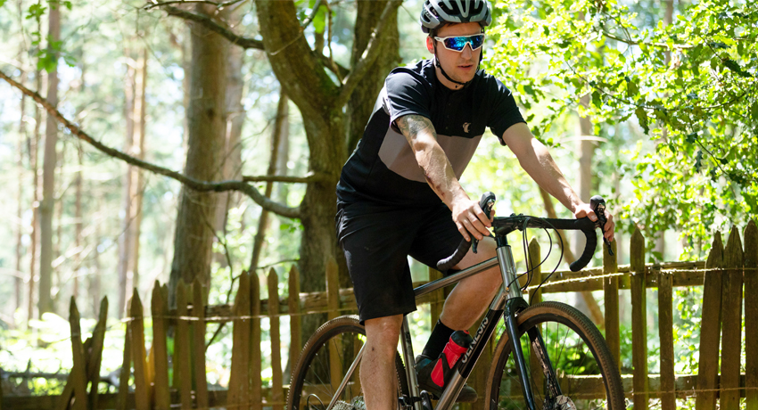 Cycliste roulant sur un vélo gravel Genesis Croix de Fer 2019