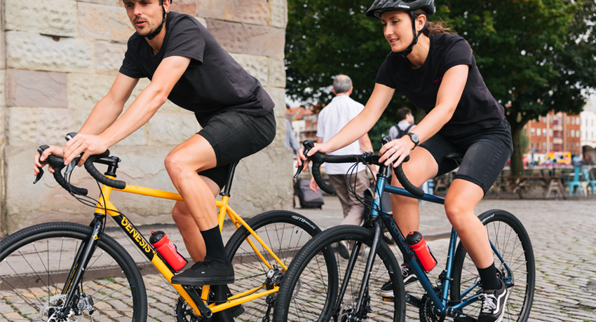 Vélos gravel Genesis Croix de Fer 2019 en situation en ville et sur route