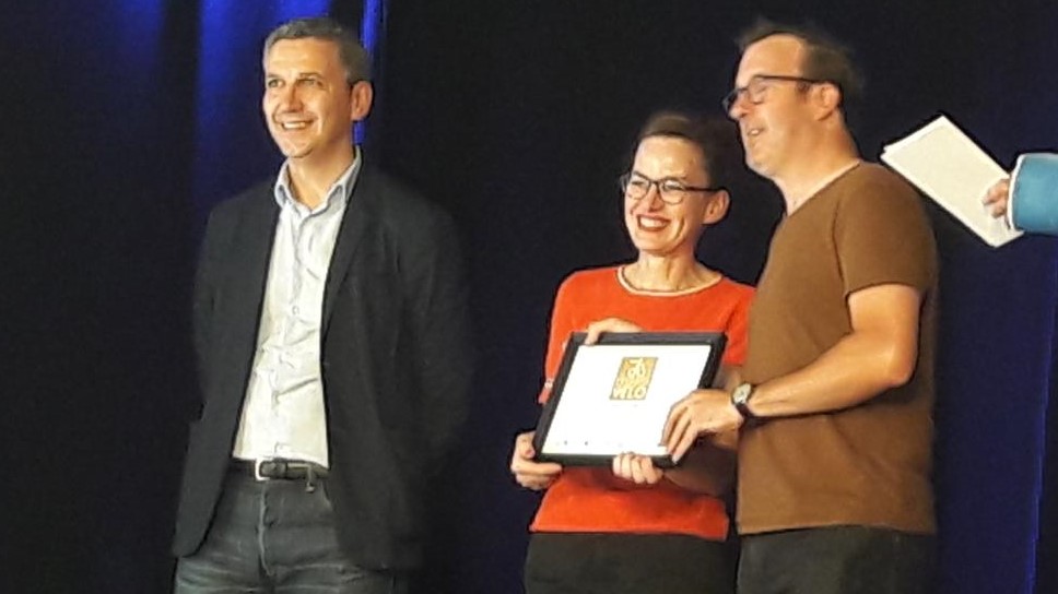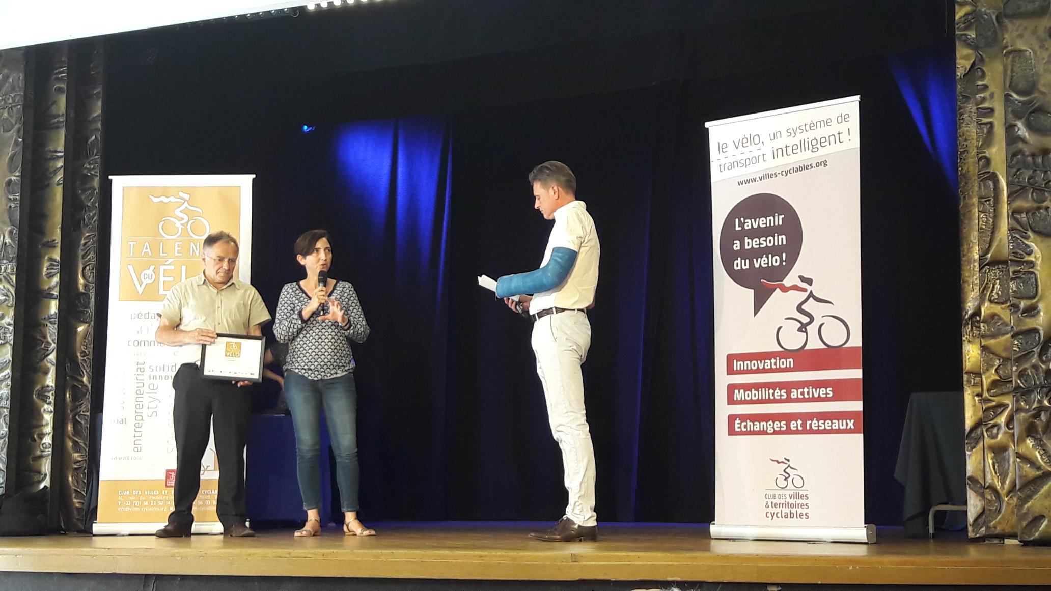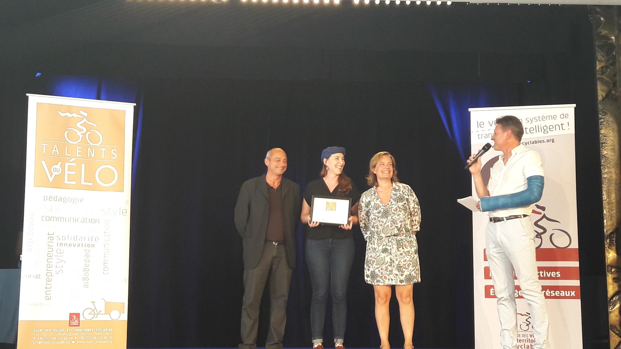 Céline Forestier qui représentait Cyclable lors des talents du vélo a remis le Prix à la représentante de la métropole de Lille. Un projet Créateur de Cycliste à l’image de la vocation de Cyclable !