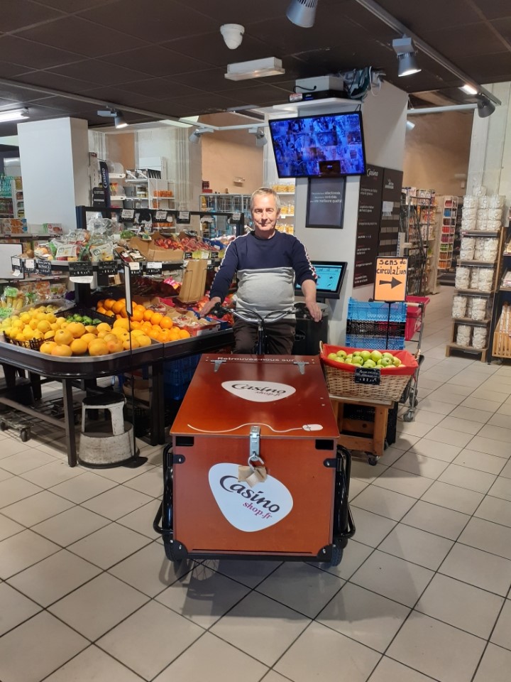 Sébastien : volontaire pour livrer les courses à vélo cargo dans sa commune