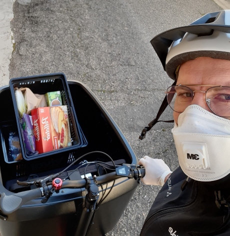 Chaque matin, Sébastien reçoit un appel des commerçants et il passe sur son vélo cargo récupérer les commandes pour les livrer aux personnes âgées. Il possède masque, gants et gel hydroalcolique, ce qui lui permet d’assurer cette nouvelle mission avec toutes les précautions requises.