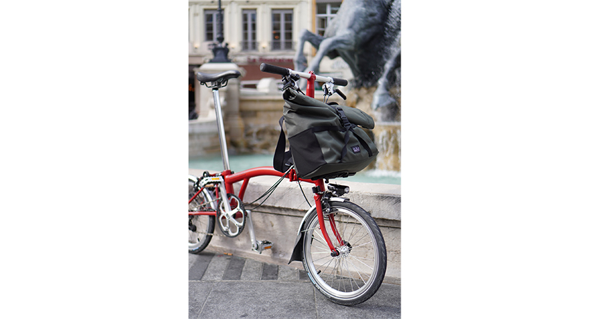 Sur chaque cadre de Brompton, comme un gage d’authenticité, figurent les initiales du braseur qui l’a assemblé. Un sens du détail et de la finition érigé en marque de fabrique. Naturellement, la bagagerie bénéficie de cette minutie scrupuleuse. On retrouve par exemple le logo de la marque gravé sur les boucles de déclenchement rapide. Une attention particulière a également été accordée au choix des matières, sélectionnées pour leur durabilité et issues pour certaines de la filière du recyclage (bouteille plastique, nylon balistique).