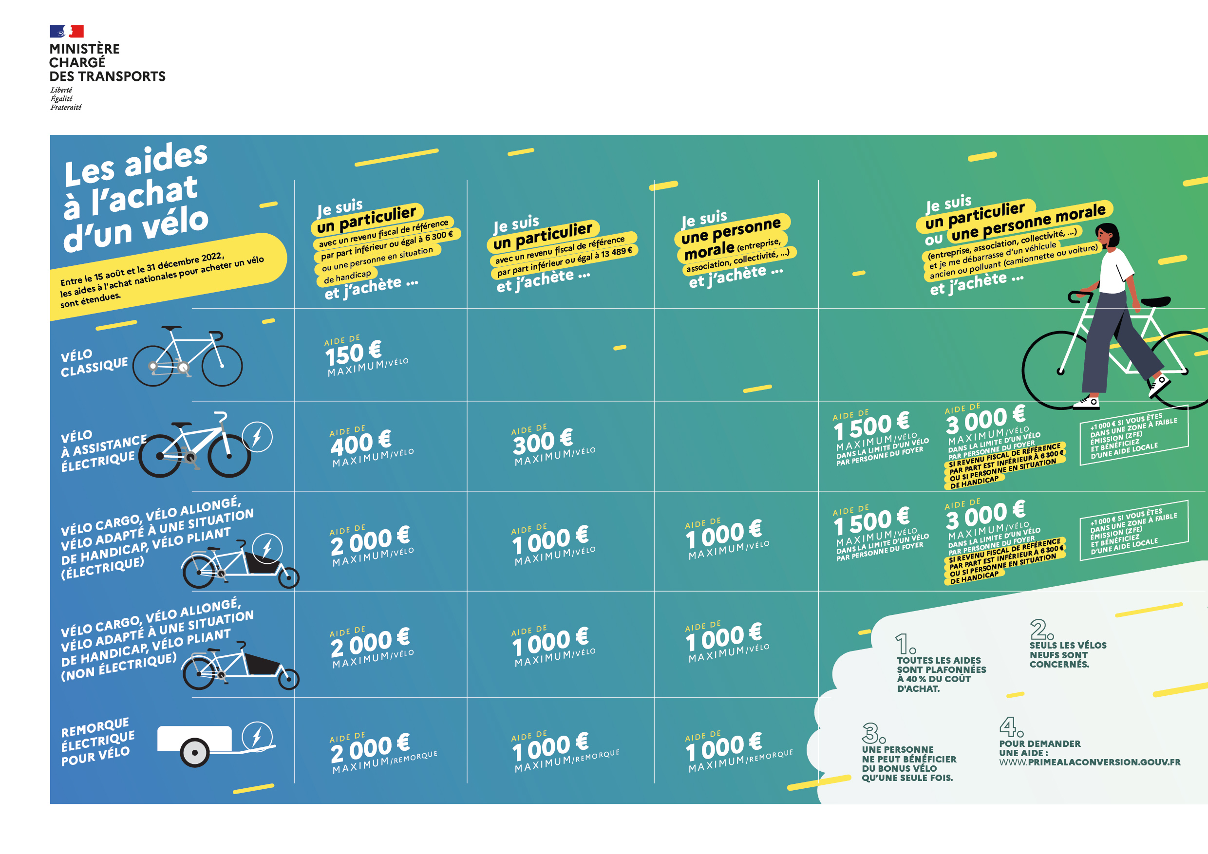 Même si des restrictions de taille demeurent (conditions de ressources strictes), ces deux coups de pouce qui ont déjà favorisé la mise en circulation de nombreux vélos, voient leurs contours assez largement redéfinis. Plusieurs évolutions majeures devraient permettre d’élargir la base des bénéficiaires, mais aussi de gagner en pertinence, en particulier, auprès des publics les plus précaires chez qui les dépenses liées aux déplacements atteignent parfois des sommets. Quelles sont précisément ces nouveautés ? Voici ce qui change à compter du 15 août 2022 et jusqu’au 31 décembre prochain.