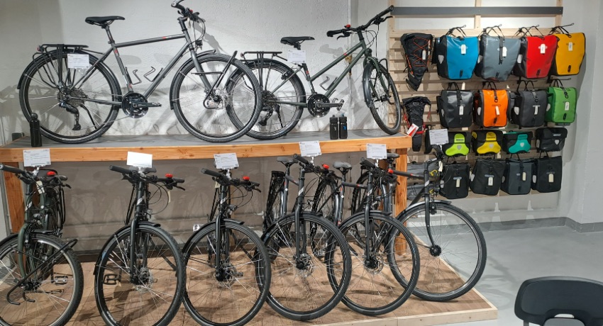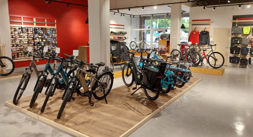 Avant l’ouverture, des travaux ont été réalisés dans le local pour lui donner l’âme d’un magasin Cyclable. “A l’intérieur, on retrouve les couleurs rouge et blanche et le mobilier bois caractéristiques du réseau”, décrit Eric. “Nous disposons d’une belle surface aérée de 280 m² avec un atelier semi-ouvert. Une grande baie vitrée rend l’espace de vente très lumineux et met en valeur nos produits.” Un subtil mélange de chaleur et d’élégance. “Nous multiplions les efforts pour faire du magasin un lieu de vie agréable. Au-delà des aménagements, nous apportons une attention particulière à l’écoute de chacun et à la qualité de l’accueil”, assure Eric.