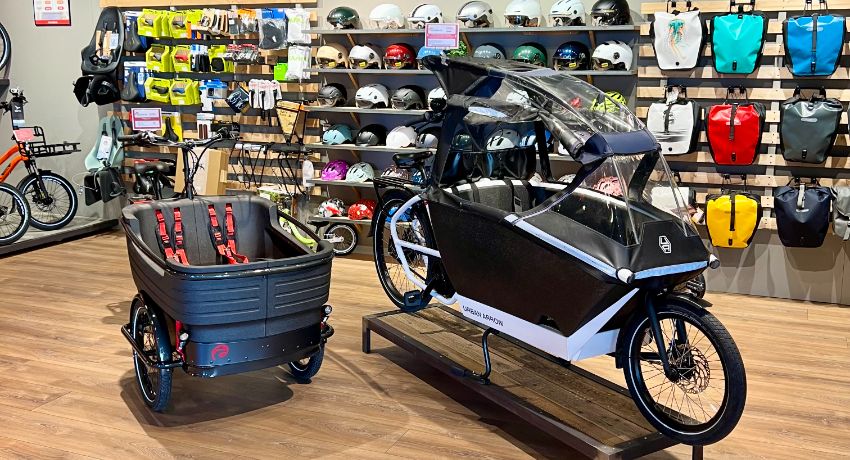 Complémentaires géographiquement, les deux magasins partagent également le même ADN : la mobilité du quotidien ! “Nous travaillons en synergie avec la même ambition : faire passer les habitants de Lausanne derrière le guidon.” Pour ce faire, le magasin de Lausanne-Malley dispose d’une large sélection de VAE. “Petits trajets urbains pour aller faire les courses, vélotaf sur terrain vallonné, déplacements plus longs depuis les villages périphériques… Nous sommes en mesure de répondre à tous les besoins grâce à nos vélos à assistance électrique de grandes marques, 25 et 45 km/h”, assure David. L’établissement de l’ouest lausannois fait notamment la part belle aux vélos cargo et aux longtails en particulier. Ces monospaces à pédales, capables d’embarquer jusqu’à 3 enfants ou les courses pour la semaine, se substituent efficacement à la voiture, en milieu urbain.