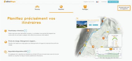 Vélo En France – Ce site est la base de données de la Fédération Française de Cyclotourisme (FFCT). Pionniers du voyage itinérant à vélo, les cyclotouristes ont rassemblé leurs connaissances, leurs bons tracés et leurs bonnes adresses, pour offrir ce support complet pour réussir de longues sorties et des randonnées en vélo électrique. Des supports de planification permettent d’affiner ses choix et de partir serein, une fois la région de destination choisie : Géovélo – Ce planificateur d’itinéraire est spécifique au vélo. Il optimise les parcours en fonction du relief et des voies vertes. Ainsi, on a l’assurance de parcourir des étapes sur des routes sécurisantes et adaptées à la randonnée. Ebikemaps – Ce calculateur est spécifique au VAE. Encore à la version Beta, son rôle est d’estimer la consommation de batterie nécessaire, en fonction des caractéristiques techniques de votre vélo, et de vos aptitudes techniques et physiques.