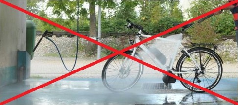 En utilisation sportive, la poussière et la terre des chemins présents dans la transmission, les roues ou le freinage peuvent endommager ces pièces. En utilisation urbaine, les corps gras qui peuvent se déposer sur les surfaces de freinage (disques ou jantes) en accéléreront l’usure. Les recommandations des fabricants imposent un nettoyage à l’eau savonneuse. Le lavage à l’aide jets à haute pression est à proscrire. Sa puissance pourrait endommager certaines parties électroniques et mécaniques, tels que les roulements, en y introduisant de l’eau.