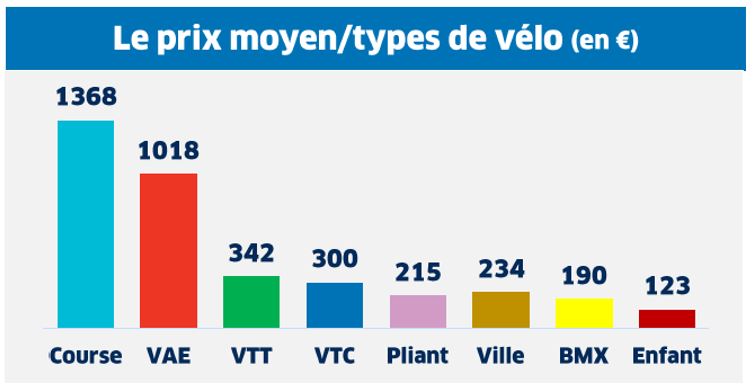 Prix moyen des vélos achetés en France en 2016 - Source Univélo[/caption]