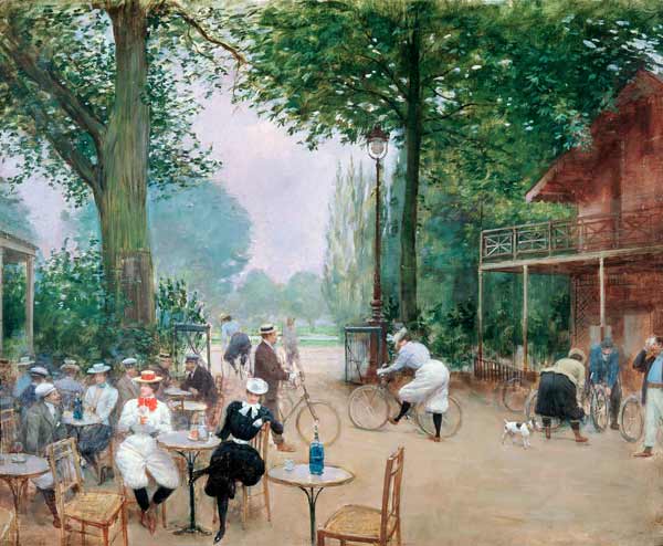 Tableau de Jean Béraud "Le chalet du cycle au Bois de Boulogne"[/caption]